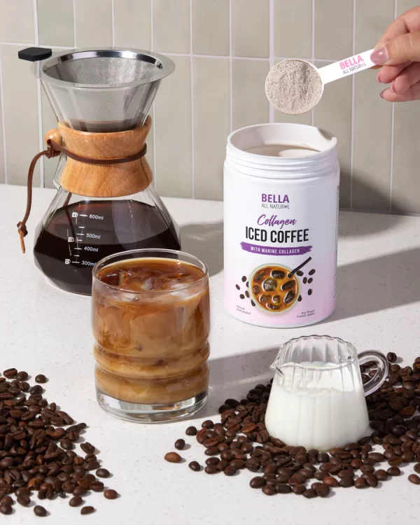 El colágeno es conocido por sus beneficios potenciales para la elasticidad de la piel y la reducción de arrugas y sequedad. Tomar colágeno regularmente puede ayudar a mejorar el crecimiento del cabello y las uñas. ¡Prepárate para sentirte y lucir de maravilla con Collagen Iced Coffee! Nuestra deliciosa mezcla no solo satisface tus antojos de cafeína, sino que también es un potente aliado para tu piel, cabello y uñas. Dile adiós a la sequedad y las arrugas y dale la bienvenida a una melena hermosa y elástica, y a unas uñas fuertes y sanas. Con el uso regular, Collagen Iced Coffee te hará sentir joven por dentro y por fuera. ¡Es como una rutina de belleza diaria en cada sorbo!