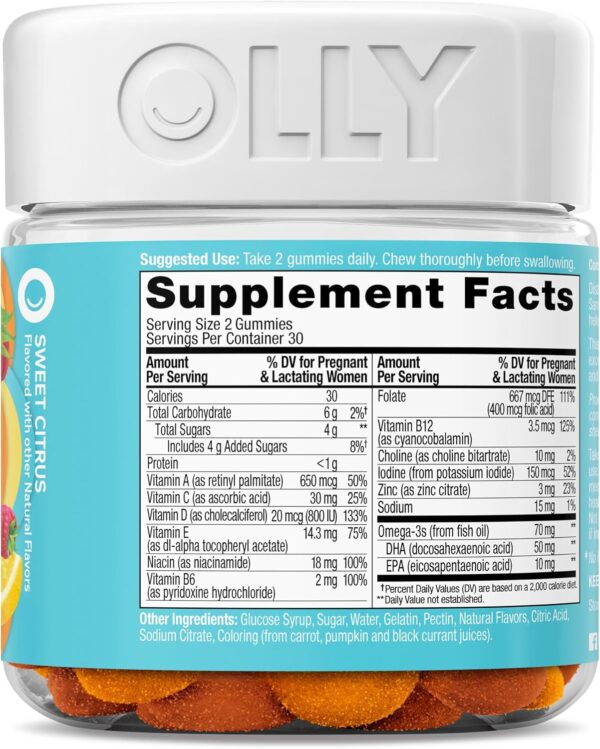 Olly Essential ácido fólico prenatal + DHA: Ya sea antes, durante o después de tu embarazo, esta mezcla nutritiva proporciona nutrientes esenciales más Omega-3 DHA para mantenerte saludable y energizado y entregar las cosas buenas a tu valiosa carga*